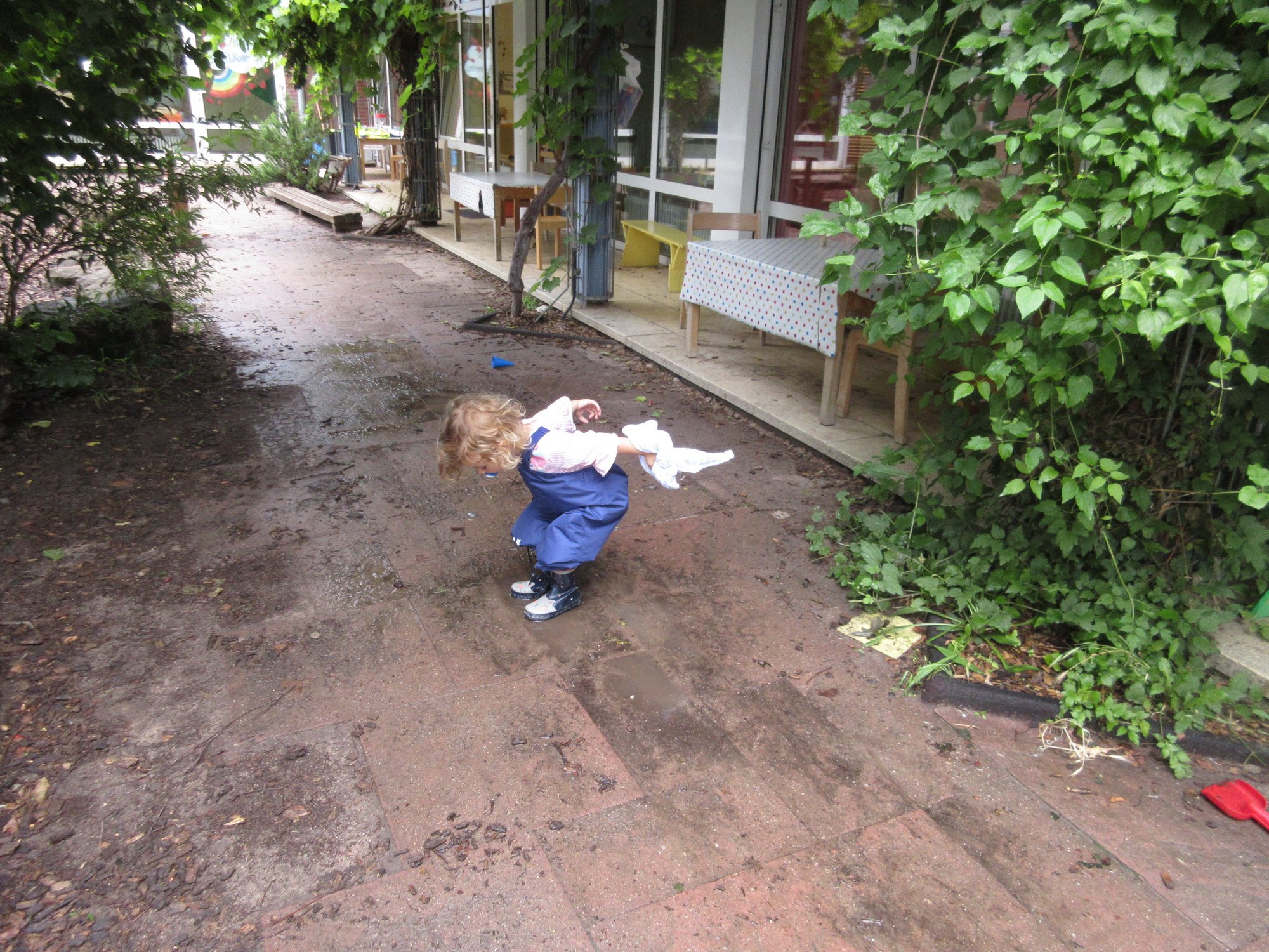 Die Kita verfügt über zwei Außenbereiche, die ganzjährig genutzt werden. Der kleinere Hof wird hauptsächlich von den jüngeren Kindern bespielt.